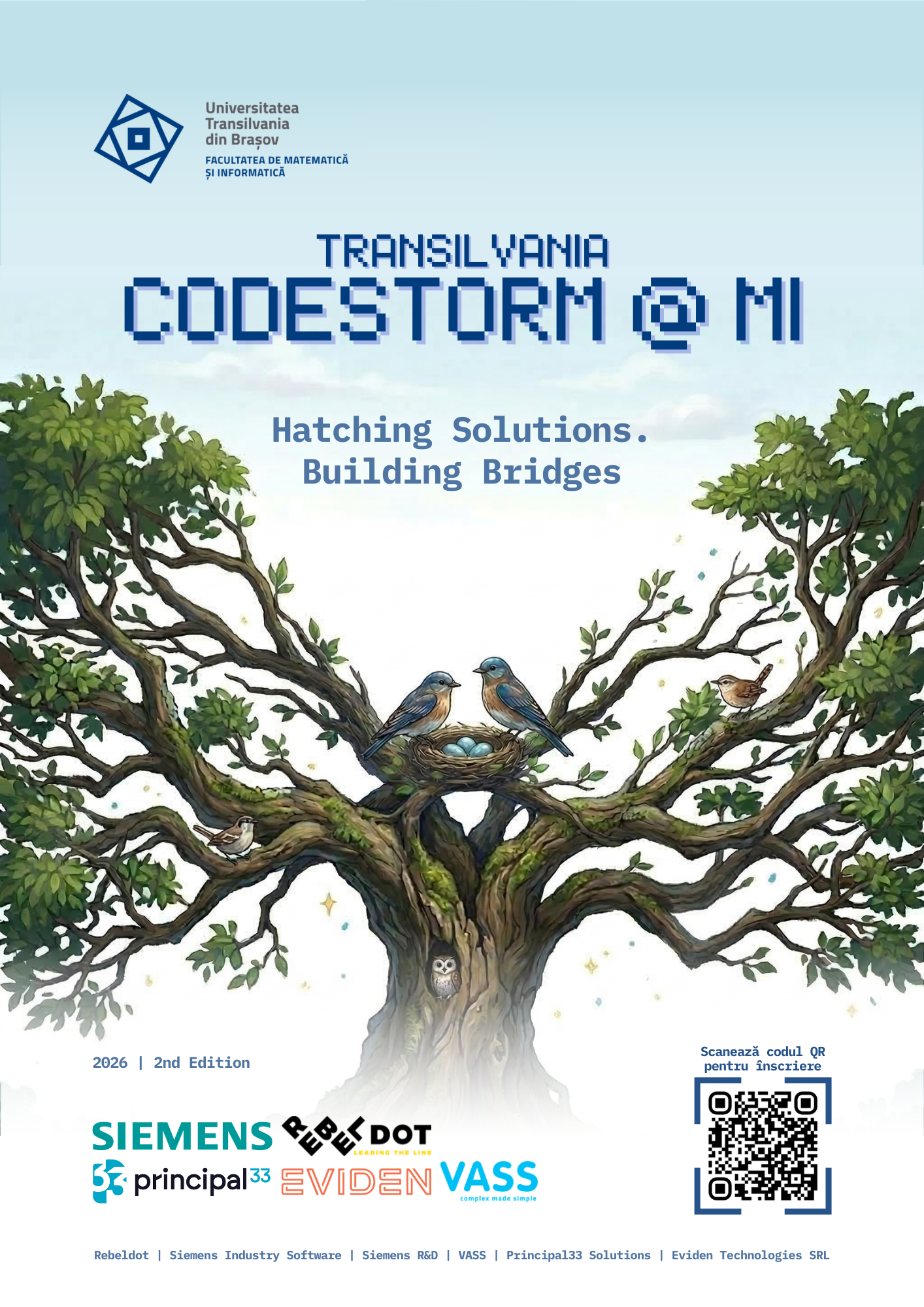 Evenimentul este organizat de Facultatea de Matematică și Informatică a Universității Transilvania din Brașov, cu sprijinul partenerilor din industrie: Principal33 Solutions, Siemens Industry Software, Siemens R&D, Eviden Technologies SRL, Rebeldot, și VASS.